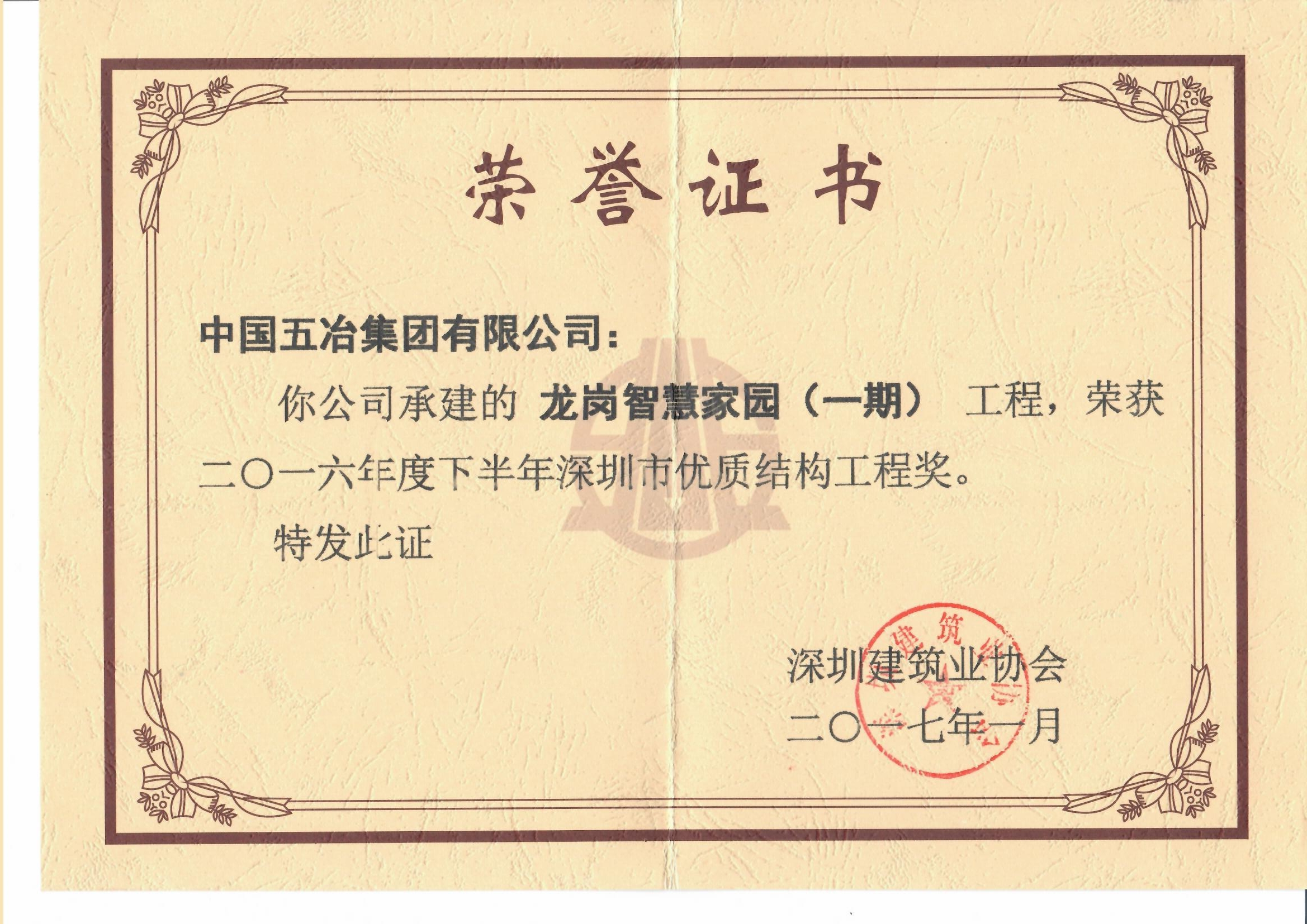 龙岗智慧家园(一期)工程荣获二零一六年度下半年����� �������Ƴ����������� �������Ƴ����������� �������Ƴ������������ �������Ƴ�������深圳市优质结构工程奖