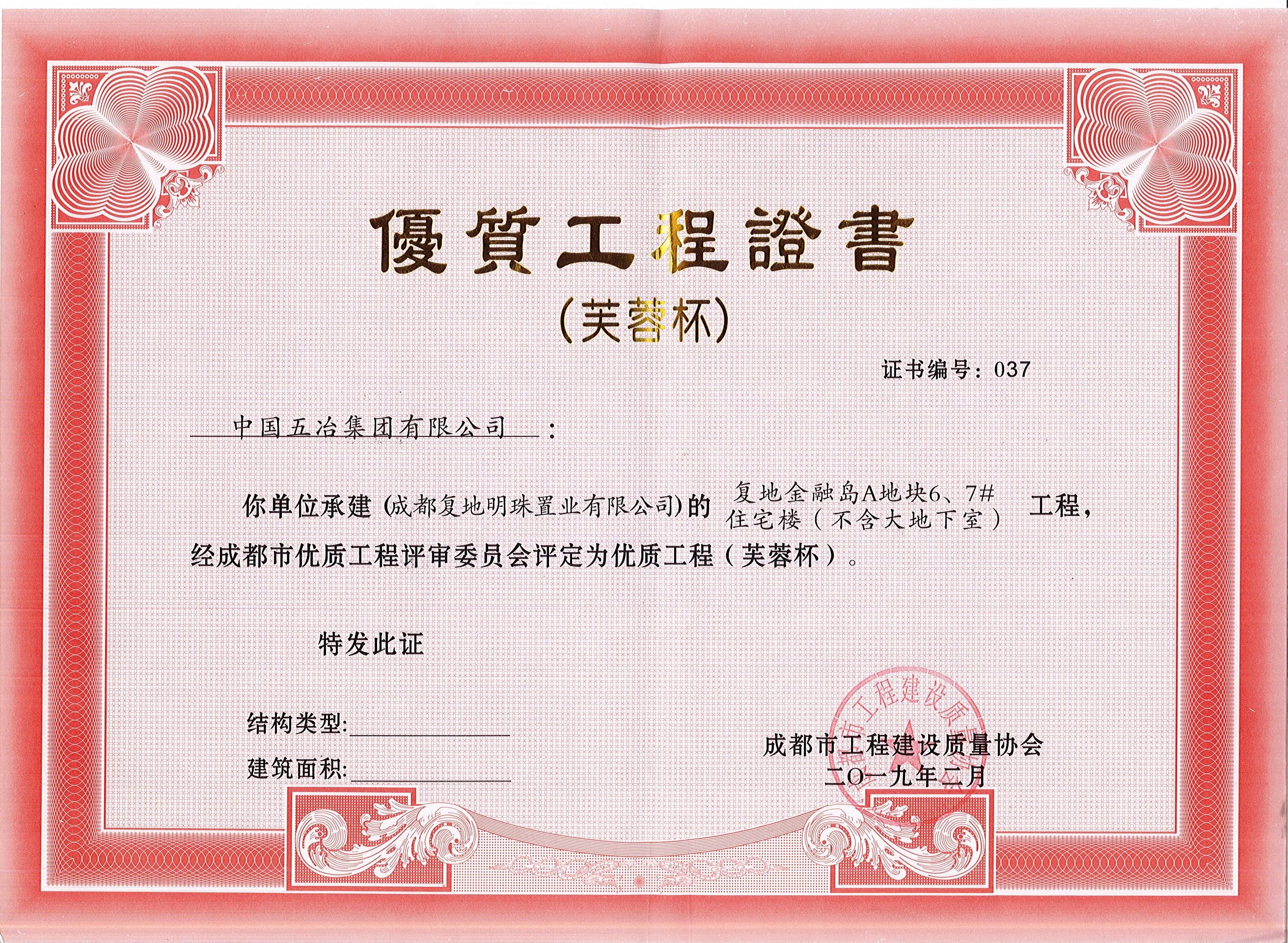 复地金融岛A地块6、7#住宅楼(不含����� �������Ƴ������������ �������Ƴ������������ �������Ƴ������������ �������Ƴ�������大地下室)—2018年成都市芙蓉杯
