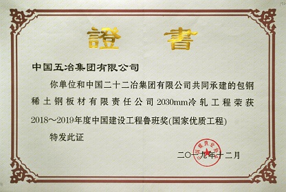 包钢稀土钢板材有限责任公司2030mm冷轧工����� �������Ƴ������������ �������Ƴ������������ �������Ƴ������������ �������Ƴ�������程——2018~2019年度鲁班奖