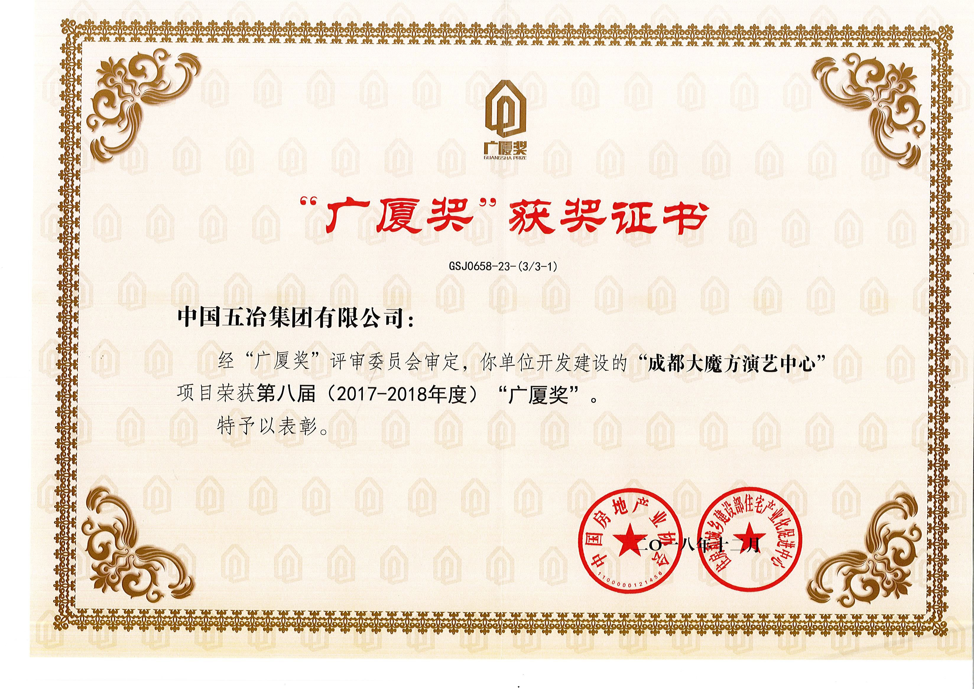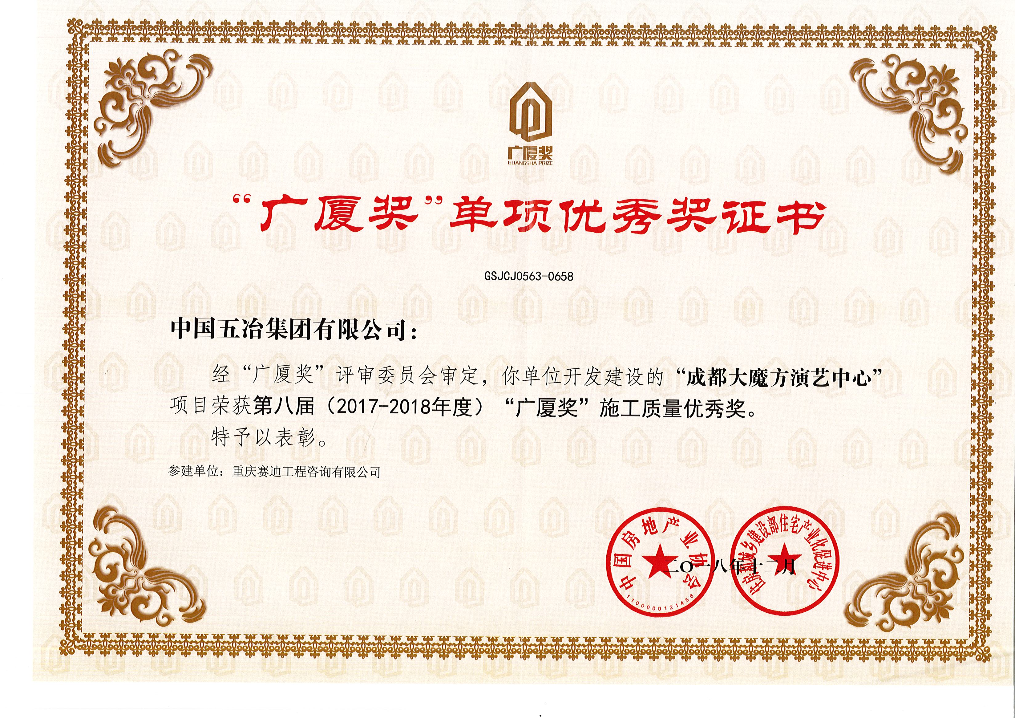 成都大魔方演艺中心—2017-2018年����� �������Ƴ����������� �������Ƴ������������ �������Ƴ������������ �������Ƴ�������度“广厦奖”施工质量优秀奖