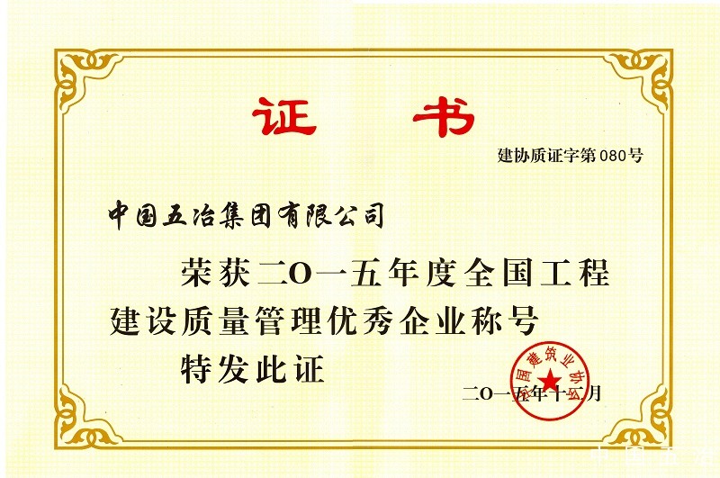 全国工程建设质量管理优秀企业